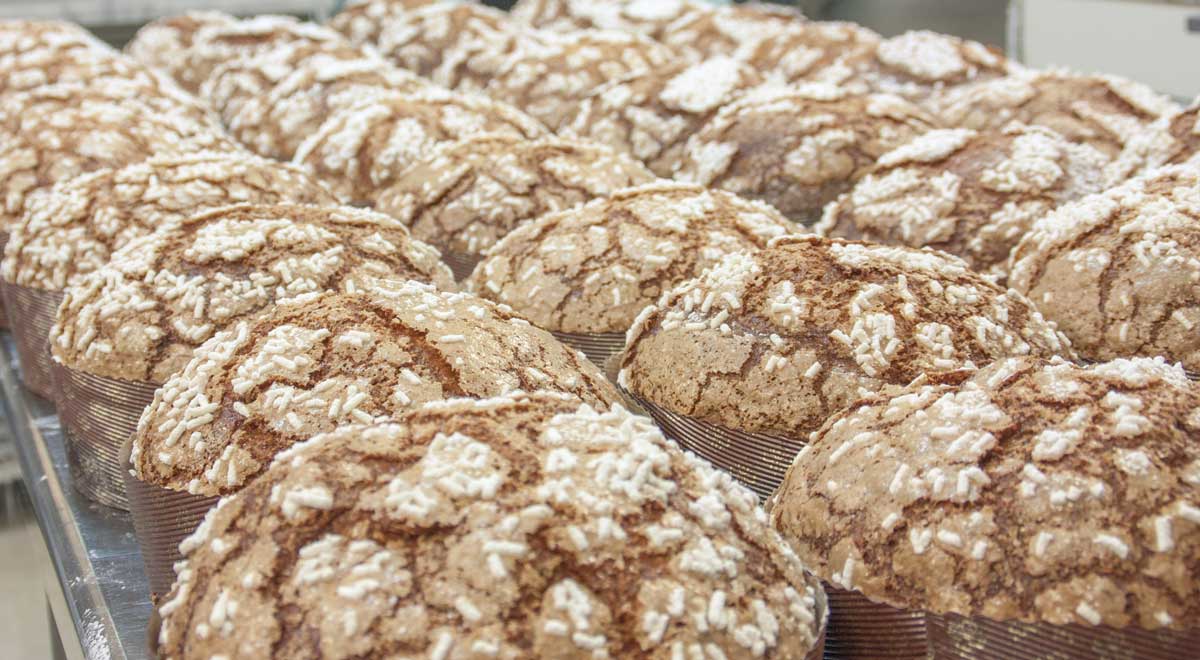 Prima della cottura, viene applicata sui panettoni la tipica glassa a base di albumi, zucchero e aromi.